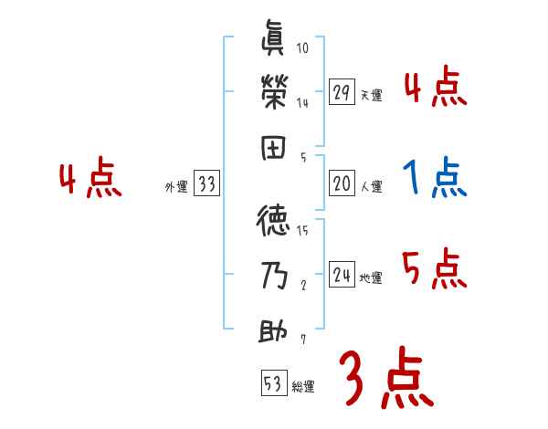 眞榮田徳乃助さんの画数の鑑定結果