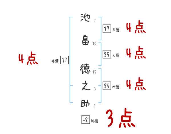外運![]() | 池畠徳之助さんの外運は17画の4つ星!積極的な行動力。地位を気づき財産を手に入れる。純粋な心と直感力。 生活面を象徴する運勢です。外部から受ける影響力を表し、結婚運、家庭運や職場、環境への順応性を表します。 |