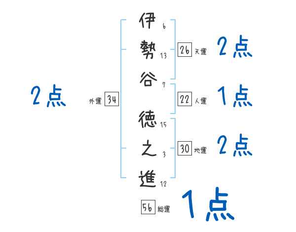 伊勢谷徳之進さんの画数の鑑定結果