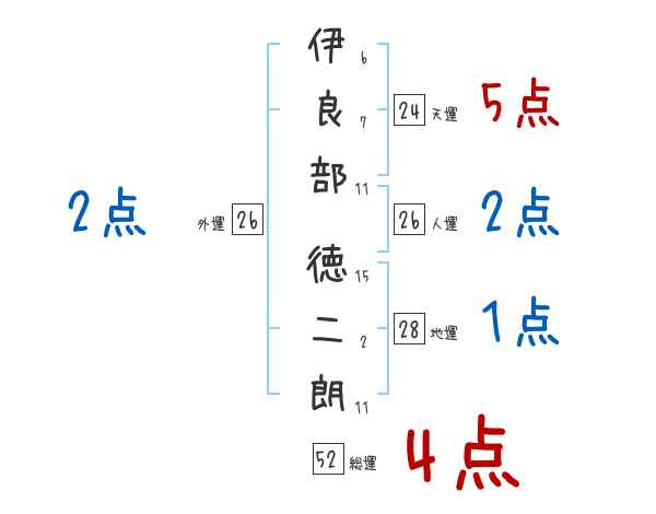 伊良部徳二朗さんの画数の鑑定結果