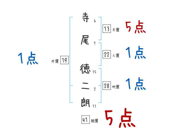 寺尾徳二朗さんの画数の鑑定結果