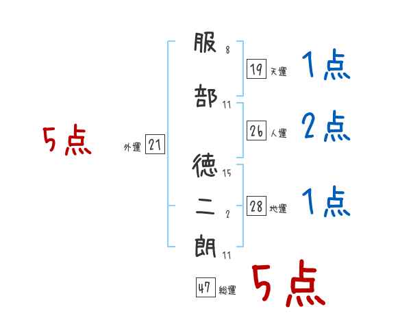 服部徳二朗さんの画数の鑑定結果