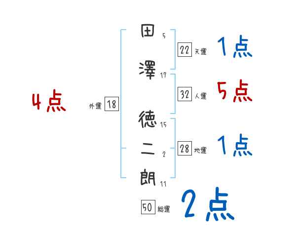 田澤徳二朗さんの画数の鑑定結果