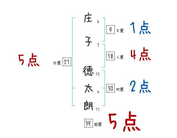 庄子徳太朗さんの画数の鑑定結果