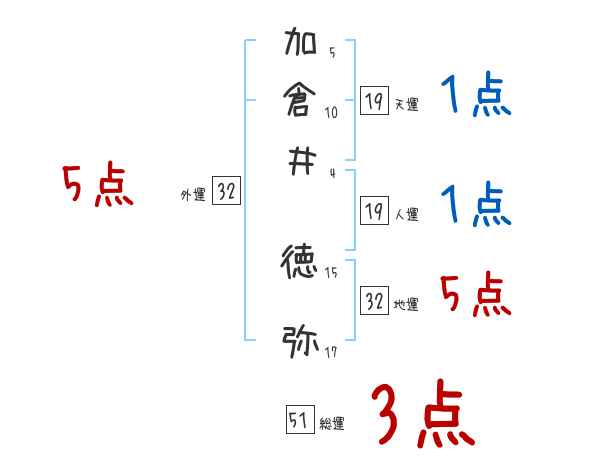 加倉井徳弥さんの画数の鑑定結果