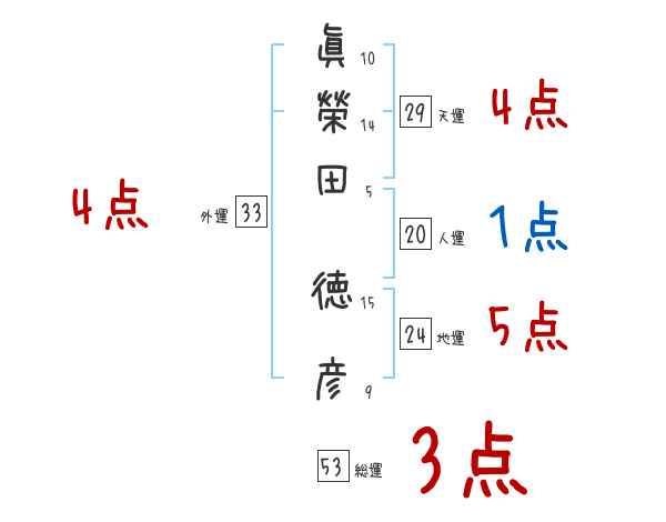 眞榮田徳彦さんの画数の鑑定結果