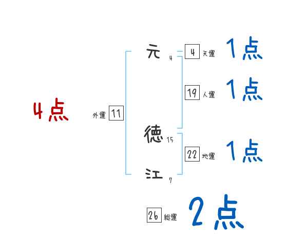 元徳江さんの画数の鑑定結果