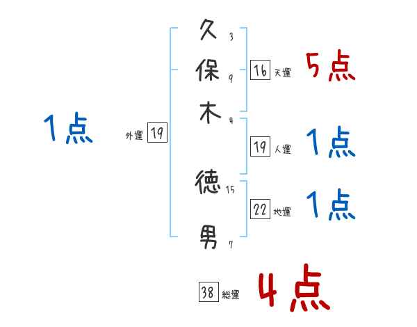 久保木徳男さんの画数の鑑定結果