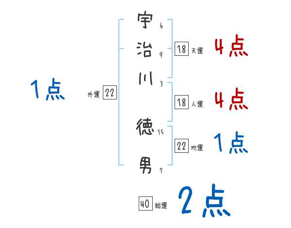 宇治川徳男さんの画数の鑑定結果