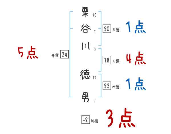 栗谷川徳男さんの画数の鑑定結果