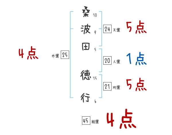 天運![]() | 桑波田徳行さんの天運は24画の5つ星!家庭運が良く順調な人生。金運にも恵まれる。 家系が持つ宿命的な運勢を表します。祖先から受け継いだ苗字ですので自分の力が及びません。家柄を象徴します。 |