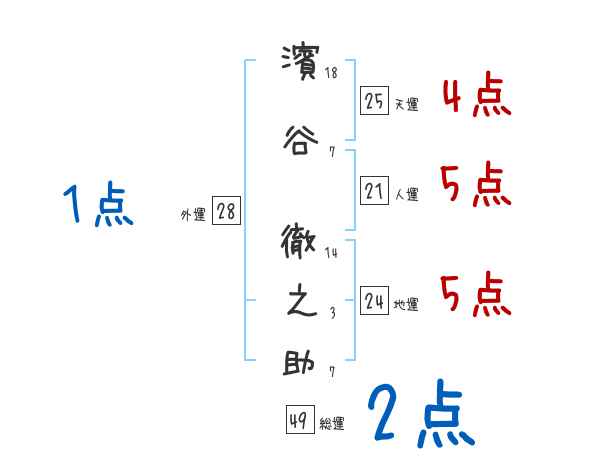 外運![]() | 濱谷徹之助さんの外運は28画の1つ星!家庭環境に注意。スポーツで活躍できる能力があるかも。 生活面を象徴する運勢です。外部から受ける影響力を表し、結婚運、家庭運や職場、環境への順応性を表します。 |