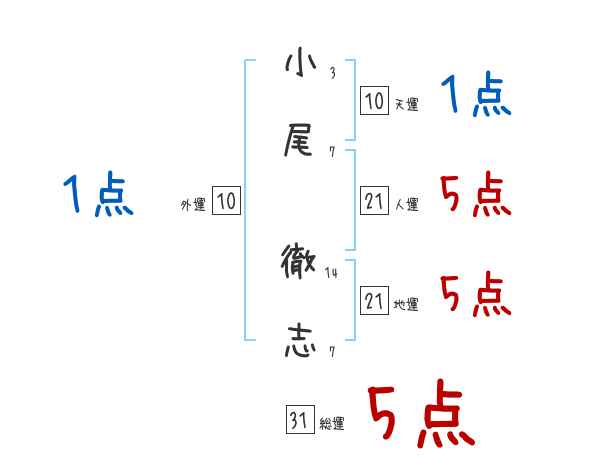 小尾徹志さんの画数の鑑定結果