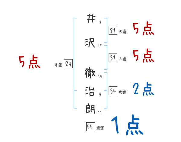 井沢徹治朗さんの画数の鑑定結果