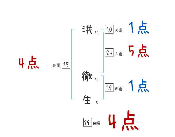 洪徹生さんの画数の鑑定結果