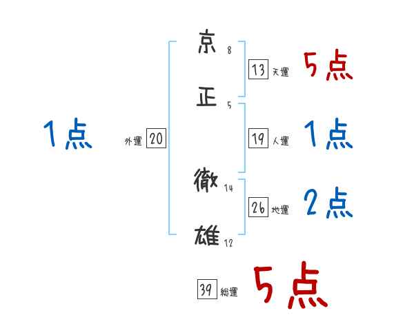 京正徹雄さんの画数の鑑定結果