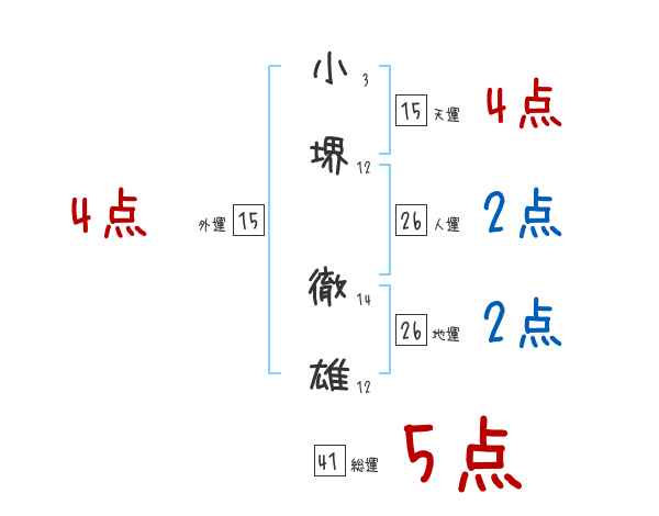 小堺徹雄さんの画数の鑑定結果