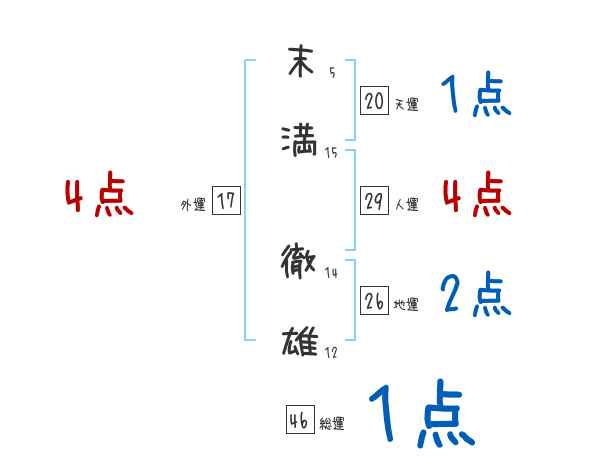 末満徹雄さんの画数の鑑定結果