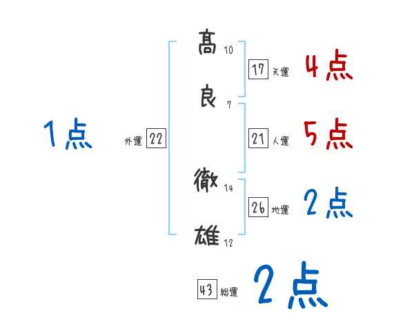 髙良徹雄さんの画数の鑑定結果
