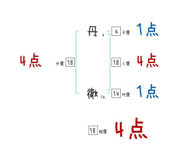 天運![]() | 丹徹さんの天運は4画の1つ星!感情が不安定で苦労するかも。周囲との協調を心掛けましょう。 家系が持つ宿命的な運勢を表します。祖先から受け継いだ苗字ですので自分の力が及びません。家柄を象徴します。 |