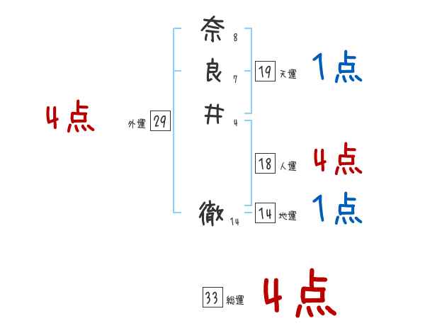 奈良井徹さんの画数の鑑定結果