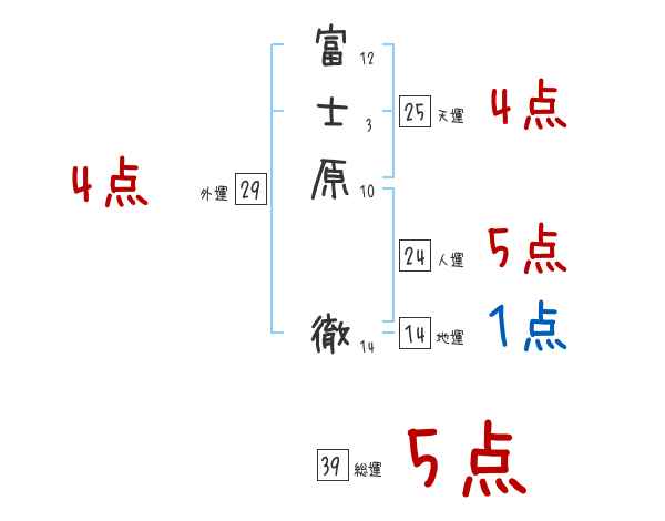 富士原徹さんの画数の鑑定結果