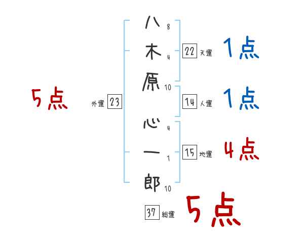 天運![]() | 八木原心一郎さんの天運は22画の1つ星!努力することが苦手ないっぽう手先が器用。芸術性にも優れる。 家系が持つ宿命的な運勢を表します。祖先から受け継いだ苗字ですので自分の力が及びません。家柄を象徴します。 |