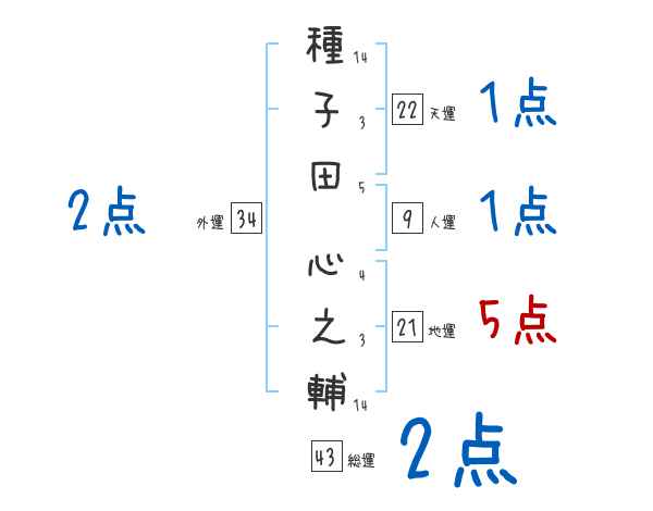 種子田心之輔さんの画数の鑑定結果
