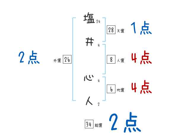塩井心人さんの画数の鑑定結果