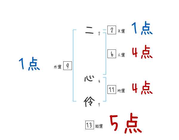 天運![]() | 二心伶さんの天運は2画の1つ星!優しいですが積極性や意思の強さに欠ける傾向があります。家庭環境の乱れに注意しましょう。 家系が持つ宿命的な運勢を表します。祖先から受け継いだ苗字ですので自分の力が及びません。家柄を象徴します。 |