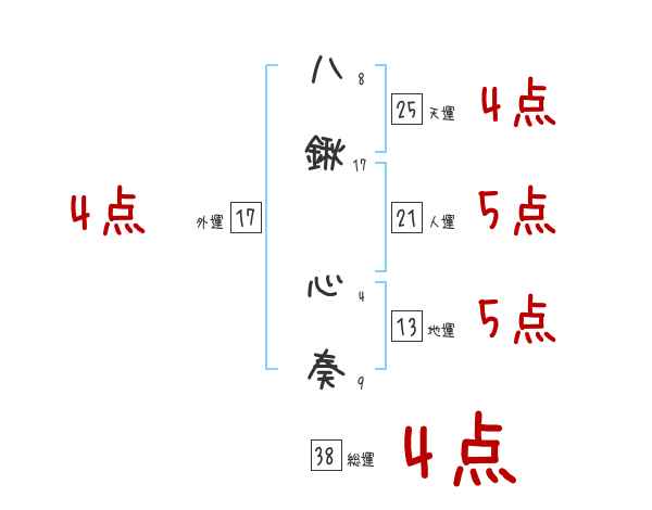 八鍬心奏さんの画数の鑑定結果