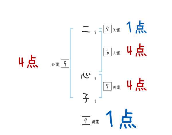 二心子さんの画数の鑑定結果