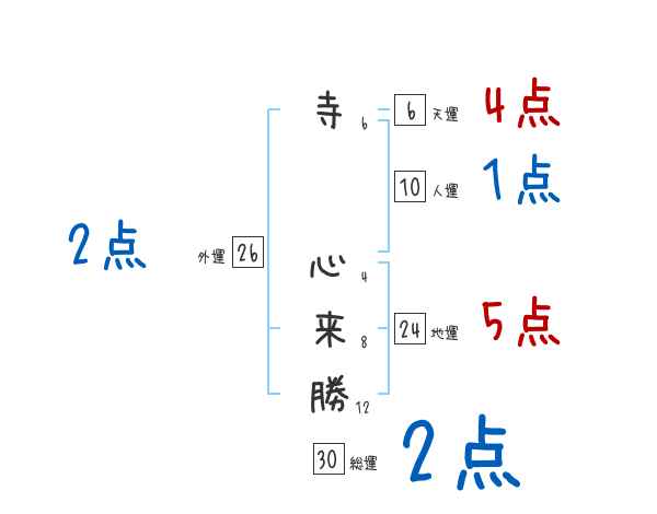 寺心来勝さんの画数の鑑定結果