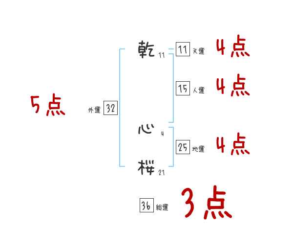 乾心桜さんの画数の鑑定結果