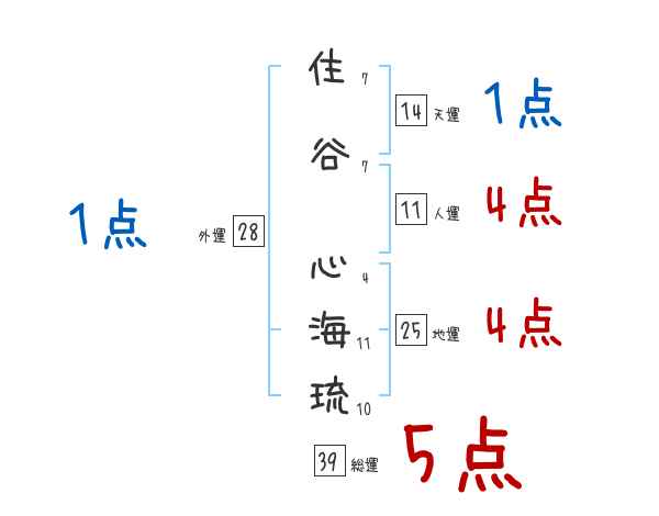 総運![]() | 住谷心海琉さんの総運は39画の5つ星!社交性に優れ人望が厚い。人の上に立ち成功する。 あなたの人生を表す1番重要な運勢です。生涯を通じて影響する総合運となり、主に50歳以降の晩年期に影響を及ぼします。 |
