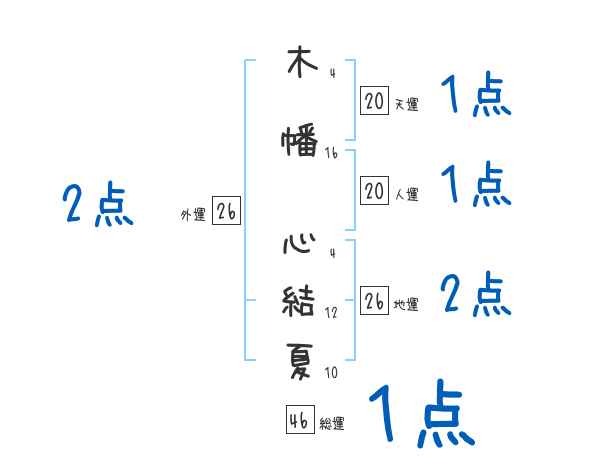 外運![]() | 木幡心結夏さんの外運は26画の2つ星!波瀾万丈かも。信頼できる人を大事にしましょう。 生活面を象徴する運勢です。外部から受ける影響力を表し、結婚運、家庭運や職場、環境への順応性を表します。 |