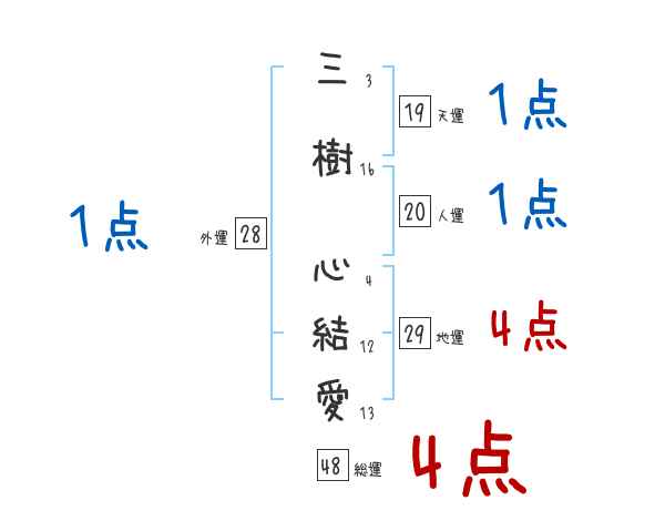 外運![]() | 三樹心結愛さんの外運は28画の1つ星!家庭環境に注意。スポーツで活躍できる能力があるかも。 生活面を象徴する運勢です。外部から受ける影響力を表し、結婚運、家庭運や職場、環境への順応性を表します。 |