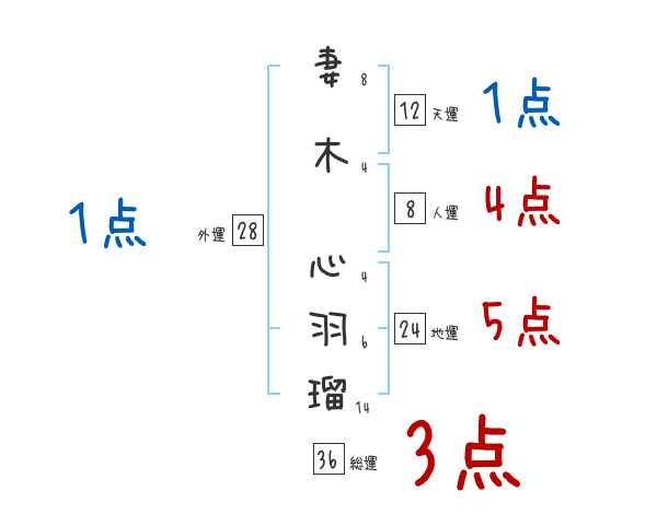 妻木心羽瑠さんの画数の鑑定結果