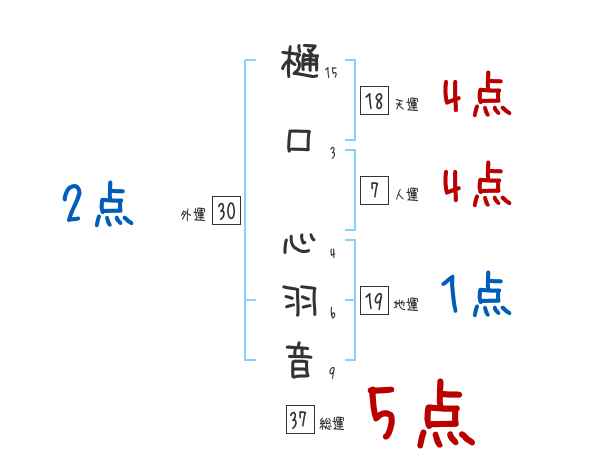 外運![]() | 樋口心羽音さんの外運は30画の2つ星!浮き沈みの激しさに注意しましょう。 生活面を象徴する運勢です。外部から受ける影響力を表し、結婚運、家庭運や職場、環境への順応性を表します。 |