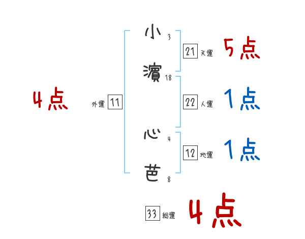 小濵心芭さんの画数の鑑定結果
