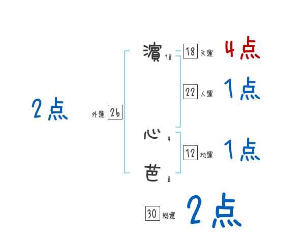 濵心芭さんの画数の鑑定結果