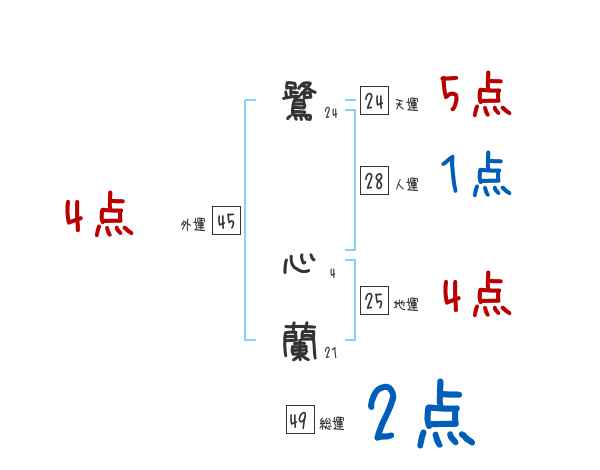 鷺心蘭さんの画数の鑑定結果