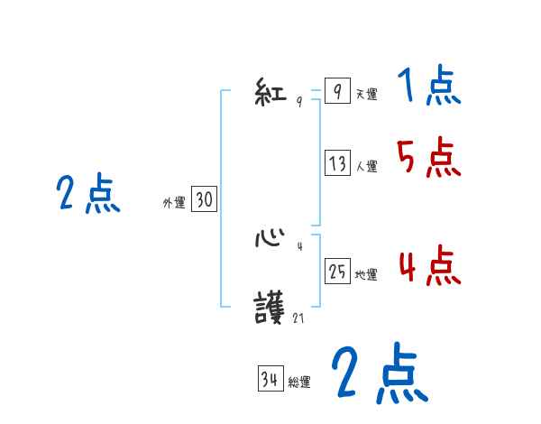 紅心護さんの画数の鑑定結果