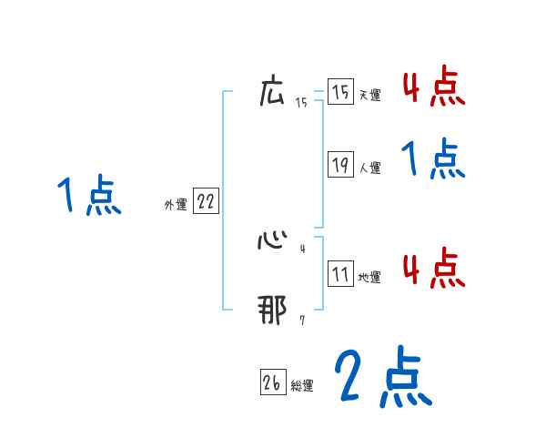 広心那さんの画数の鑑定結果