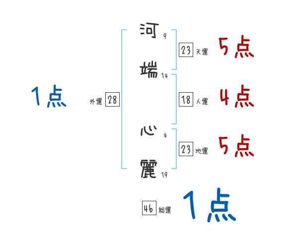 天運![]() | 河端心麗さんの天運は23画の5つ星!想像力に優れ活力がある。一代で成功し名誉を手に入れる。 家系が持つ宿命的な運勢を表します。祖先から受け継いだ苗字ですので自分の力が及びません。家柄を象徴します。 |