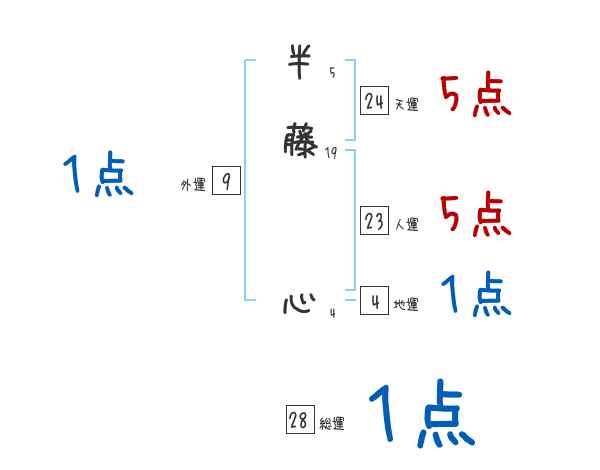 半藤心さんの画数の鑑定結果