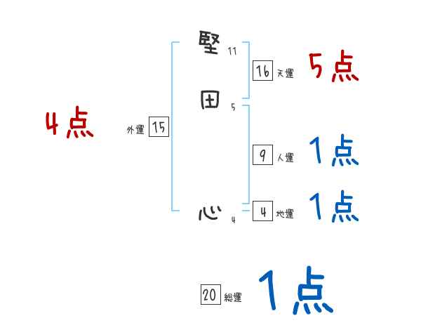 堅田心さんの画数の鑑定結果