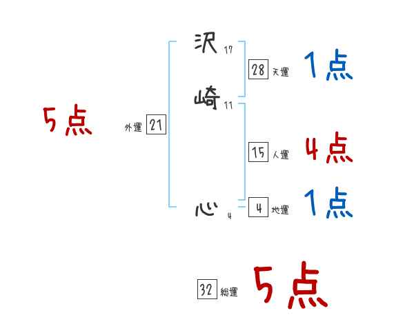 沢崎心さんの画数の鑑定結果