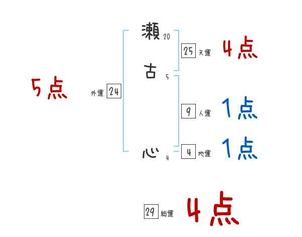 瀬古心さんの画数の鑑定結果