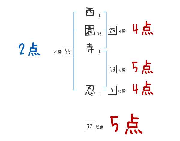 西園寺忍さんの画数の鑑定結果
